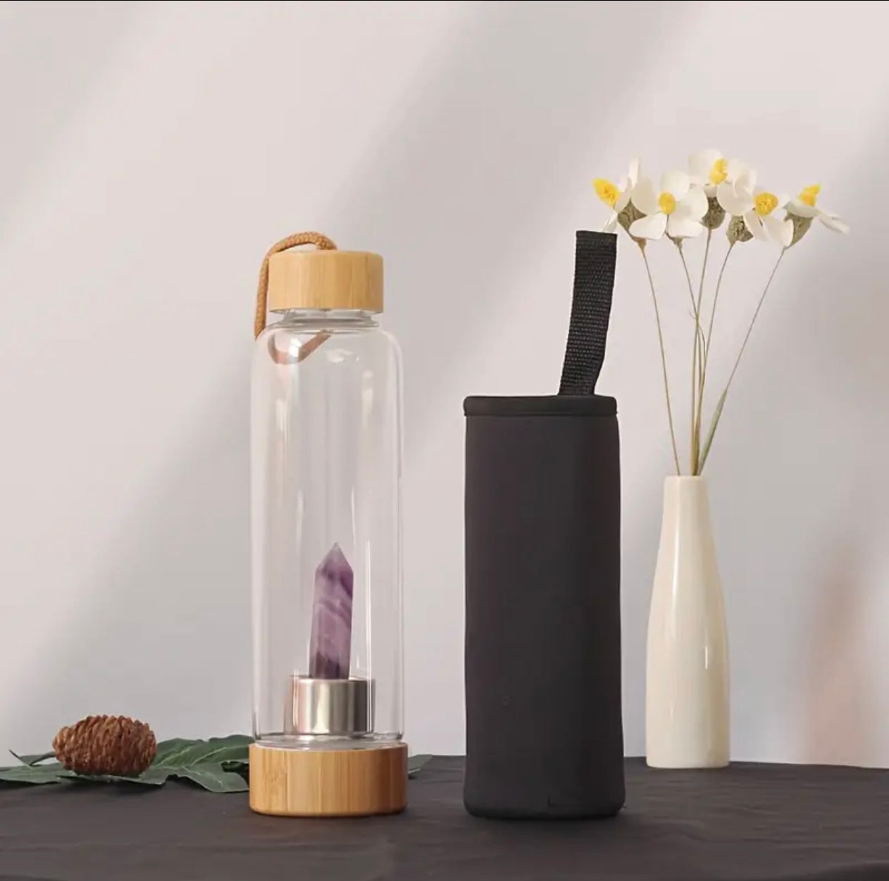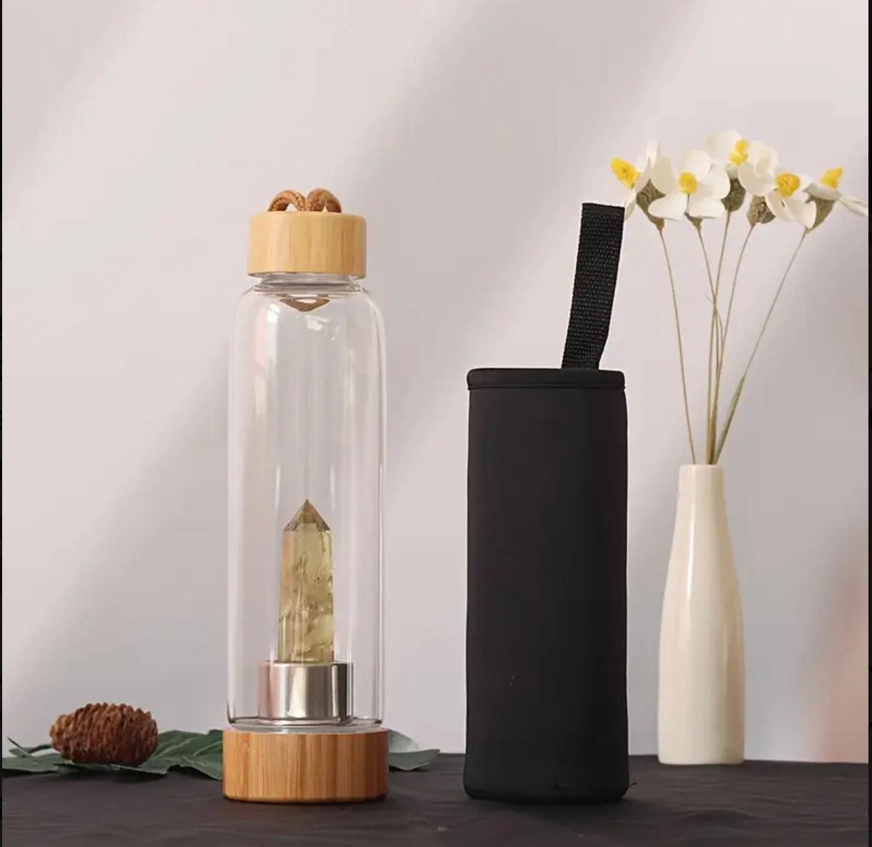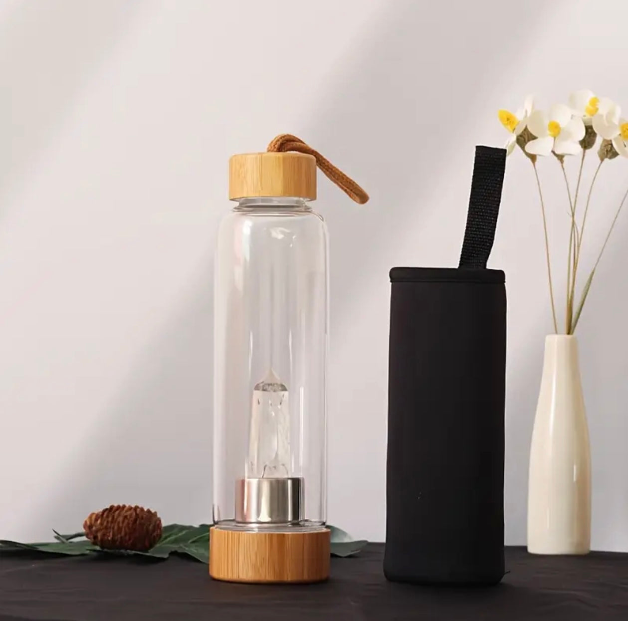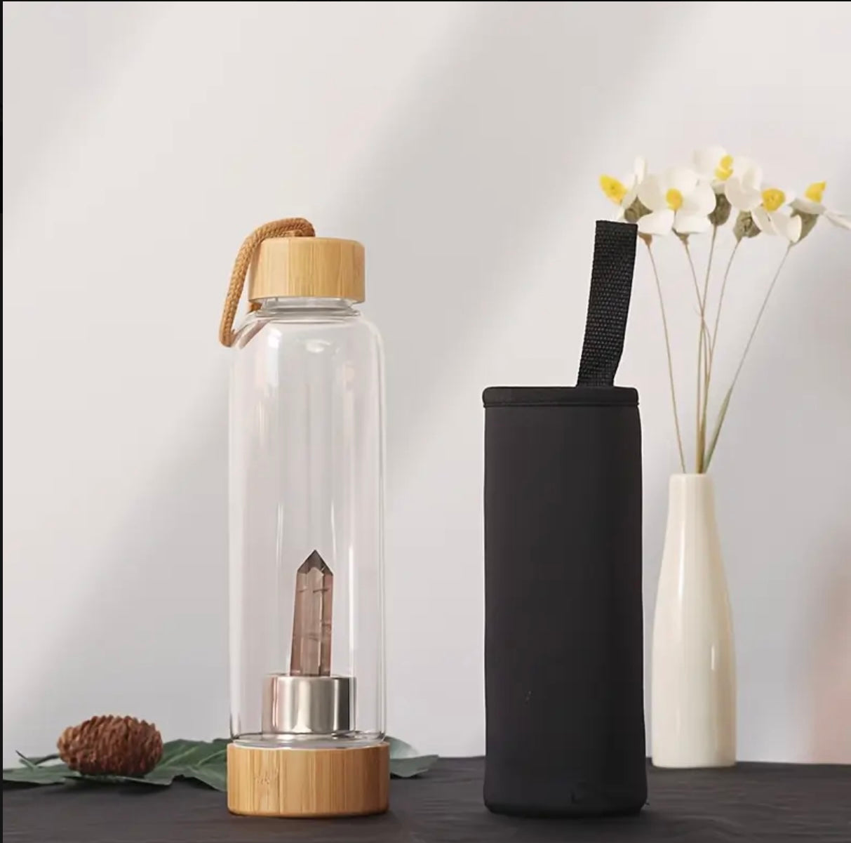 Bouteille en verre et bambou avec pierre naturelle - Intention