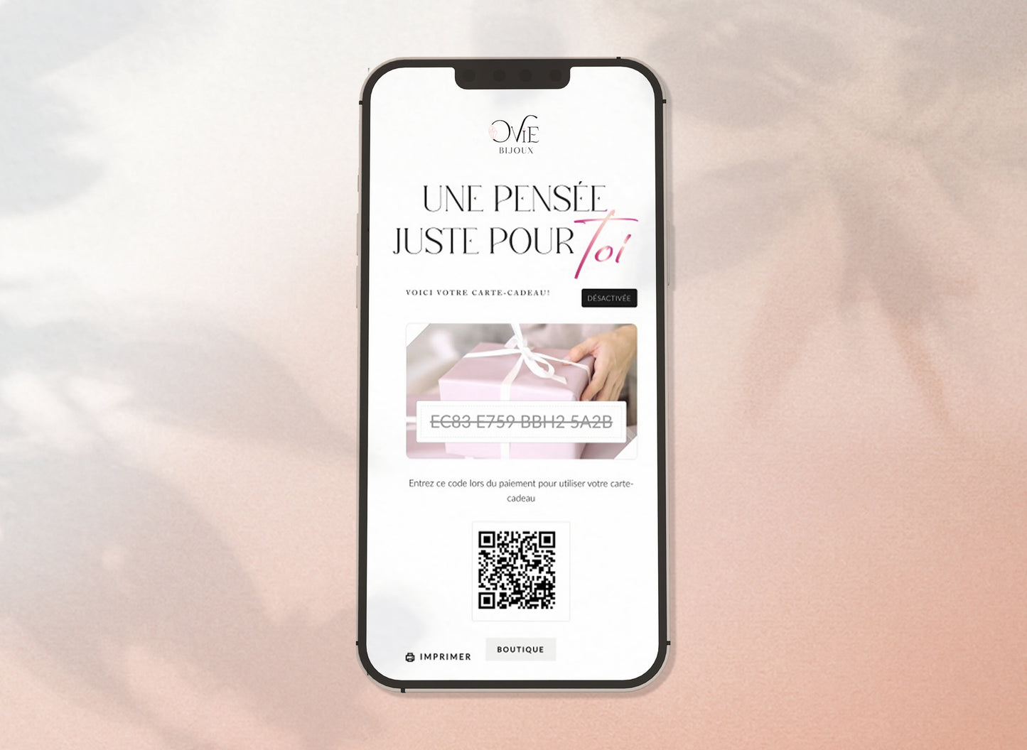 Offrez une carte-cadeau Ovie Bijoux et laissez la personne chère à votre cœur choisir un bijou fait main, symbole de féminité et de raffinement, qui illuminera leurs journées.